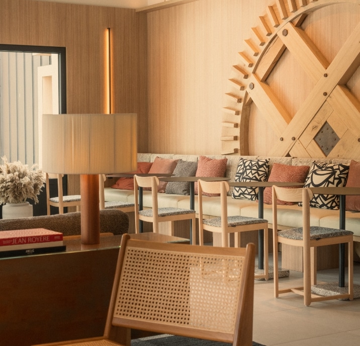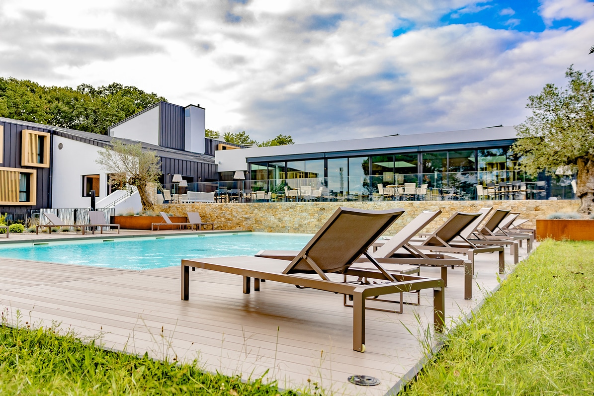 L’hôtel est situé en face du Parc du Landreau et s’intègre avec égard et délicatesse à son environnement naturel, au milieu des arbres centenaires et des jardins ouverts. Vous y serez accueilli dans une ambiance familiale et chaleureuse où chaque détail a été pensé pour vous offrir une parenthèse d’oxygène au cœur de notre région. Son architecture et les structures en bois massif et pierre de meule sont un véritable hommage à l’authenticité du bocage vendéen et ses moulins.