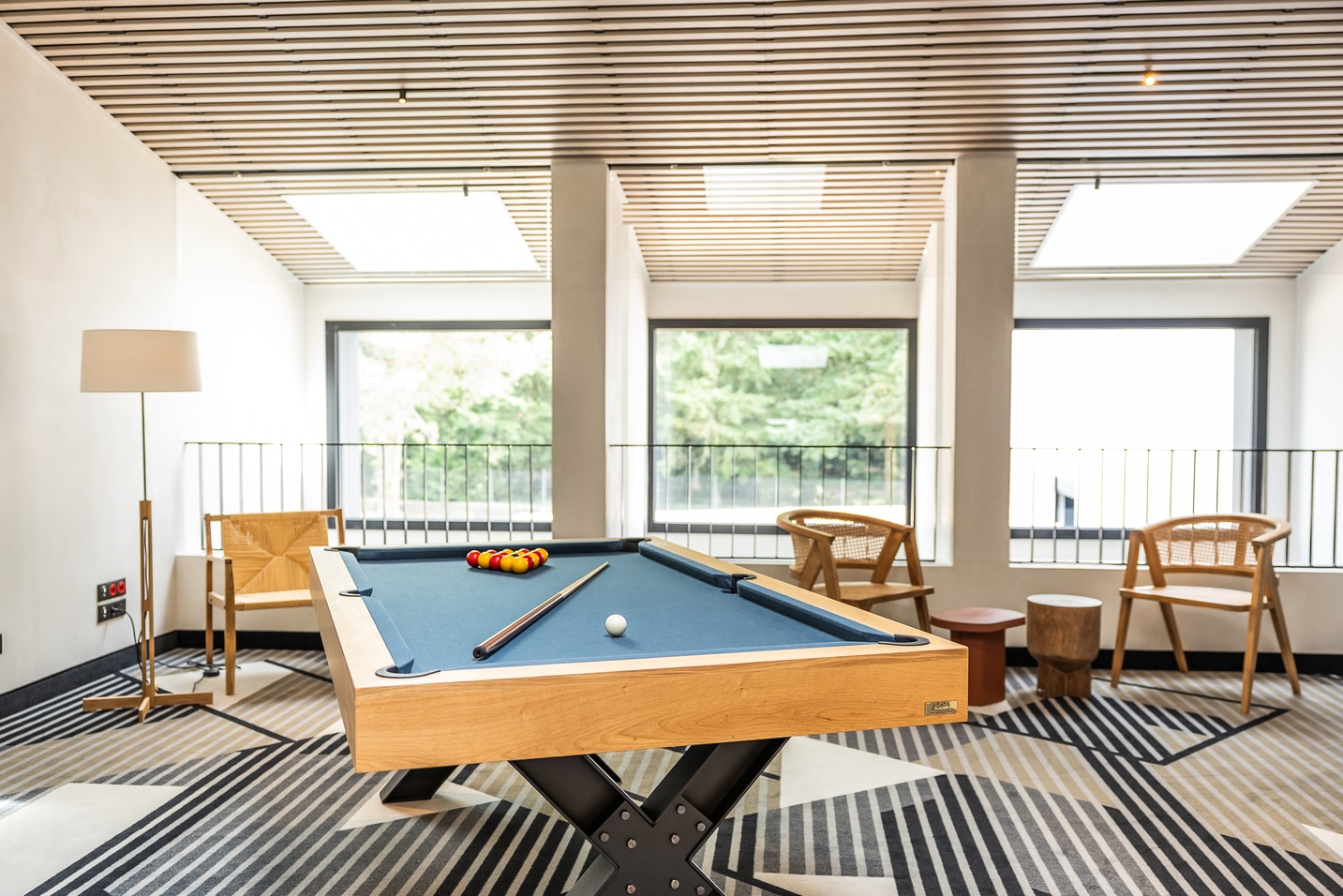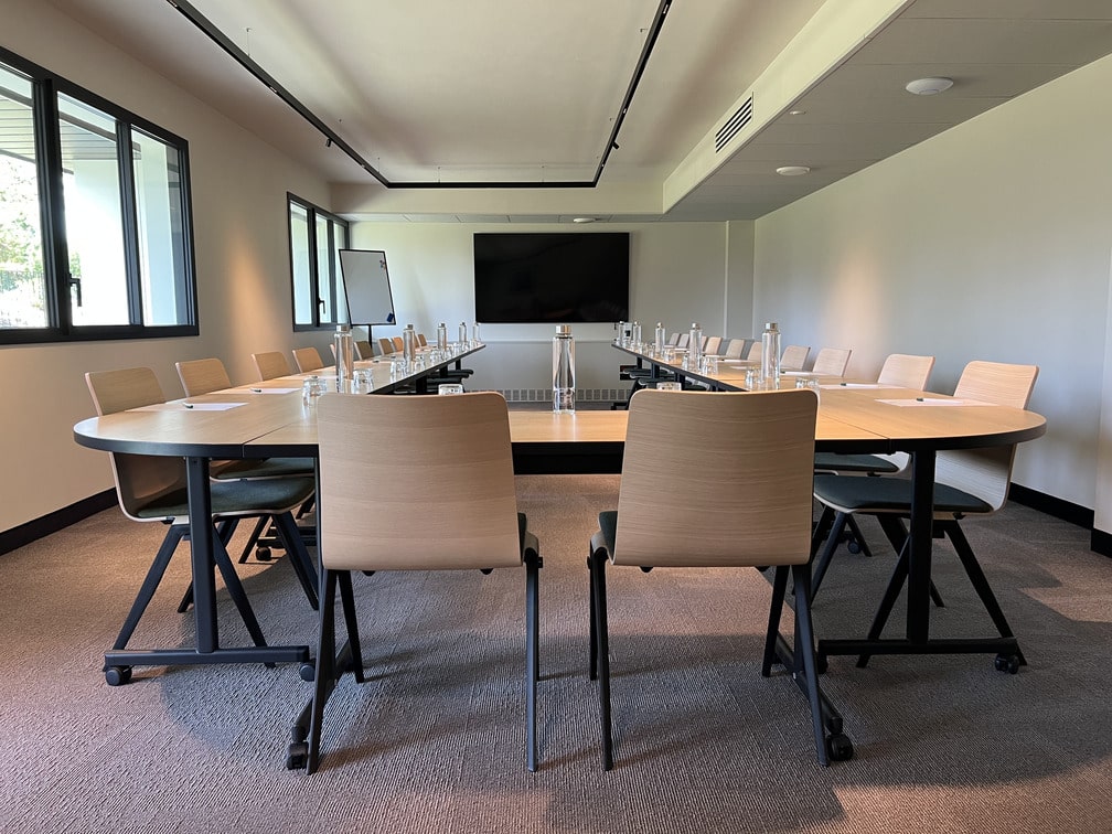 L’ancienne chapelle a été rénovée et accueille à présent des conférences. Dans ce lieu insolite, vous pourrez y admirer un grand mur de galets que nous avons tenu à conserver et mettre en valeur telle une œuvre d’art. La salle de réunion Les Genêts est aussi un clin d’œil aux anciens résidents puisque celle-ci porte le nom de l’ancienne maison de retraite. Préserver l’histoire de ce site exceptionnel tout en apportant la modernité essentielle à un confort optimal, fut l’un des enjeux de cette splendide rénovation.